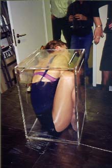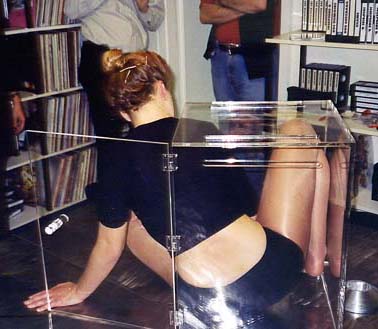 practicing getting in and out of the box, with help from Ska and Glen